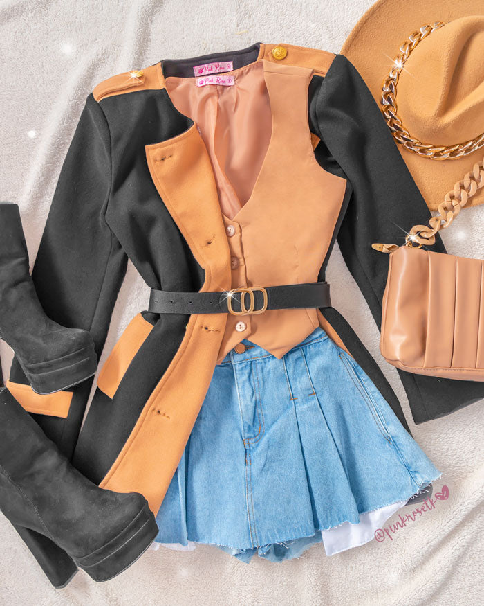 Con este chaleco camel sencillo de cuatro botones, ¡te destacarás entre la multitud! Su estilo único e intemporal te ofrece un toque de clase y elegancia sin igual. Lleva tu look al siguiente nivel con esta prenda versátil y resistente.