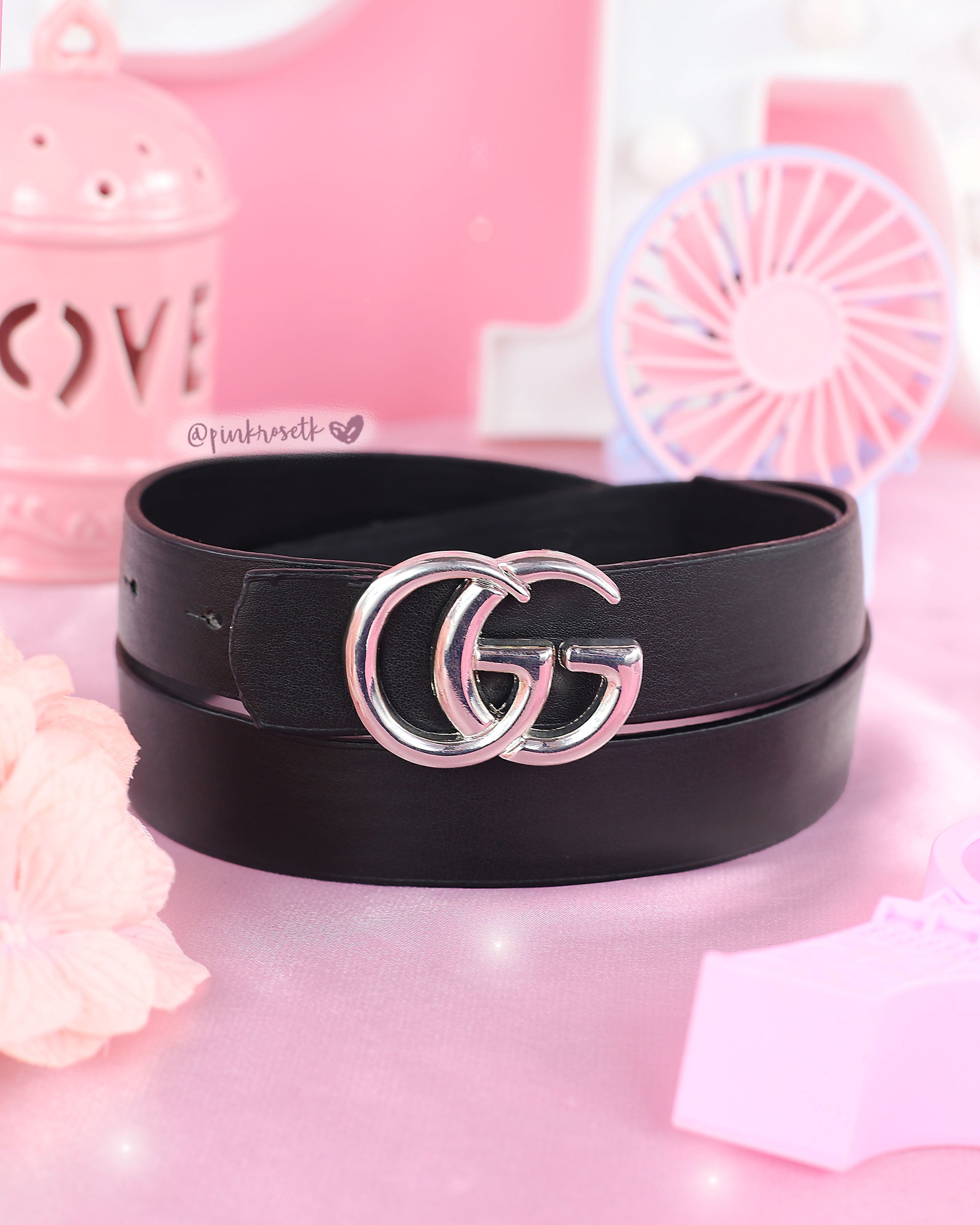 El cinturón delgado negro con herraje GG plateado es un clásico intemporal de la moda. Su herraje GG plateado le da un toque elegante y moderno, mientras el negro es un color de moda que se adapta a una variedad de estilos. Un complemento perfecto para cualquier ocasión.