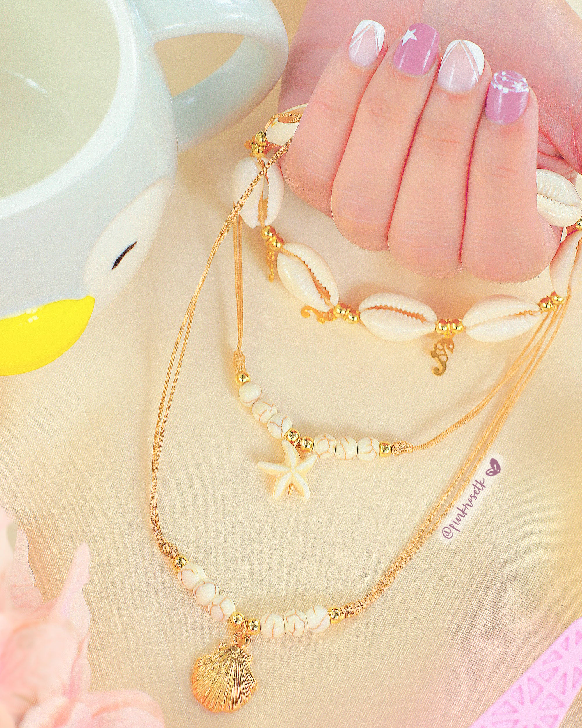 una joya imprescindible para las amantes del mar y la naturaleza. Con un diseño de tres capas y detalles de coral y dijes de vida marina, este collar aporta un toque natural y fresco a cualquier outfit. Perfecto para usar en ocasiones especiales o para darle un toque de encanto marino a cualquier look diario.