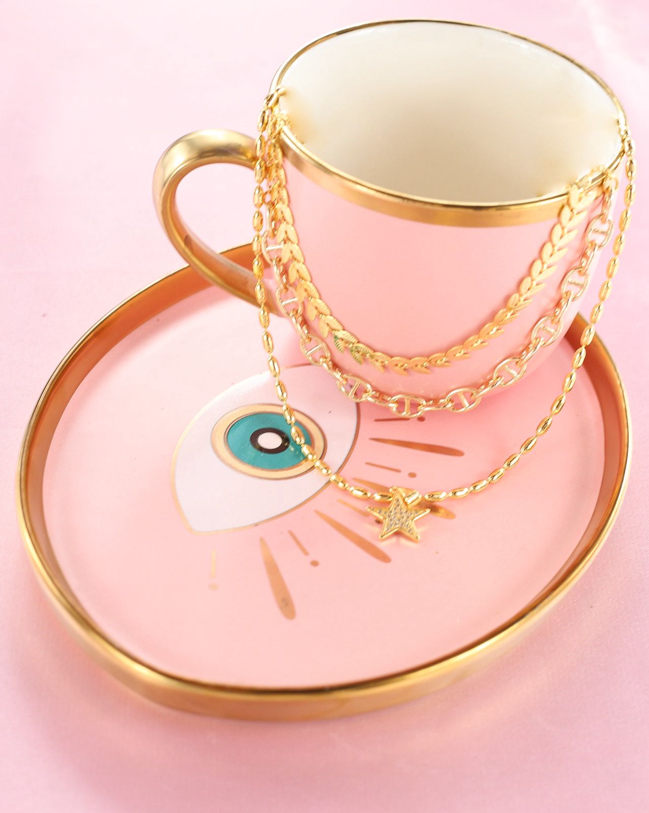 Collar triple dorado cola de sirena eslabón doble y estrella