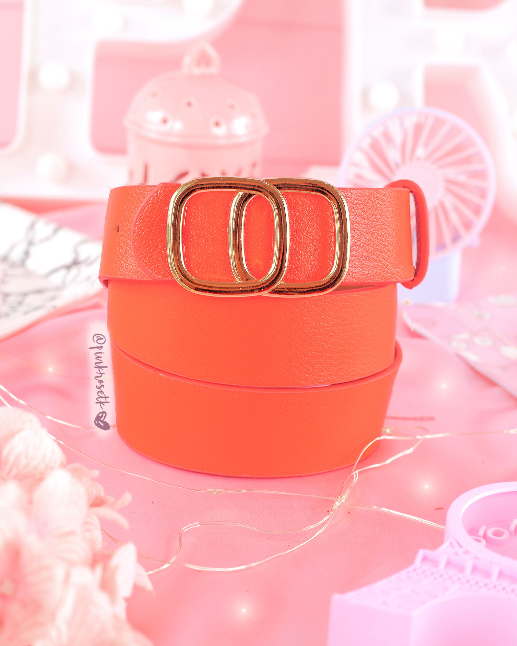 Correa naranja de hebilla 2 cuadrados dorados
