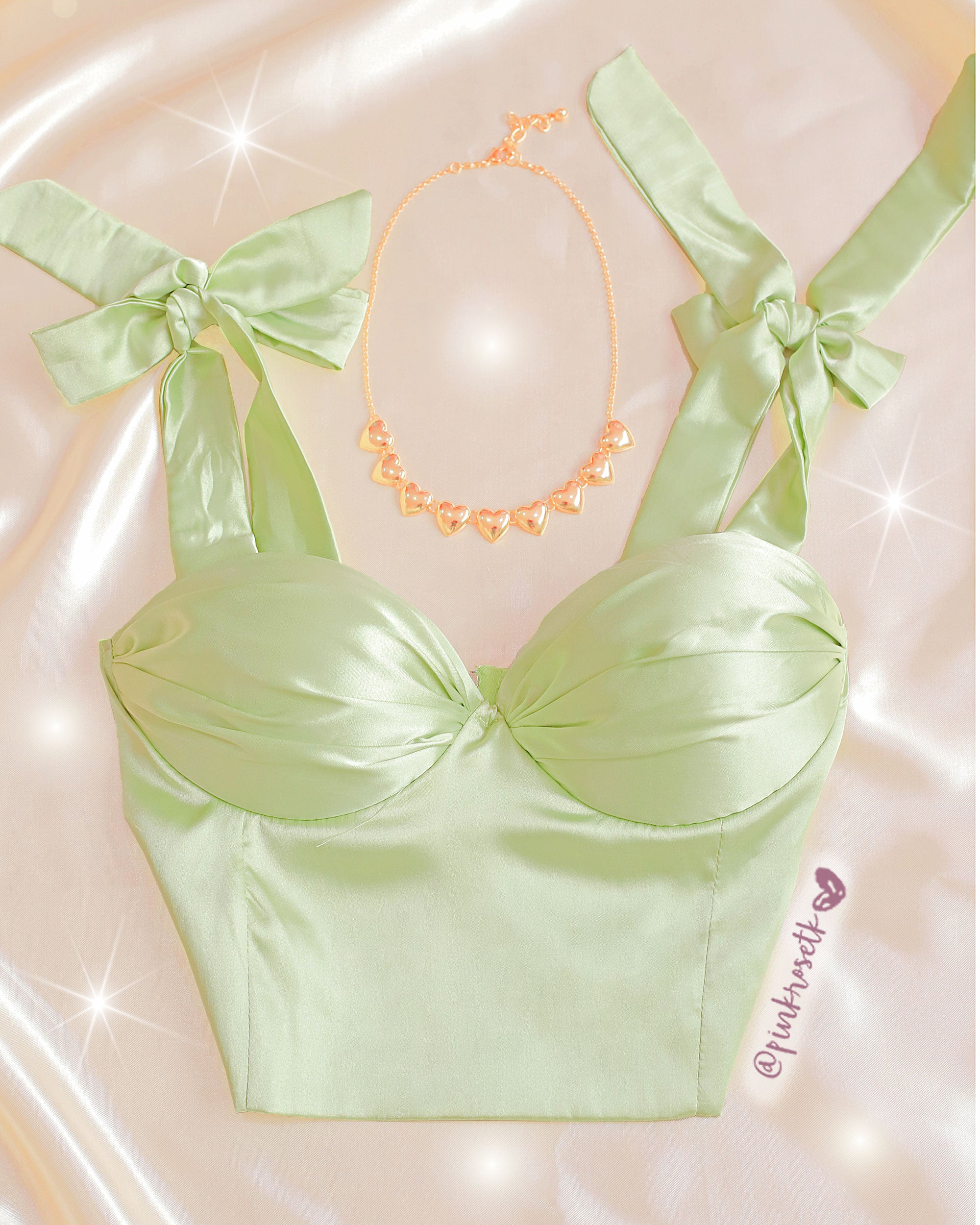 Crop top en satín con cierre de cremallera atrás y tiras para moño en el hombro