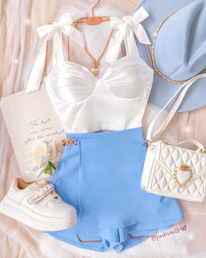 Crop top en satín con cierre de cremallera y tiras en el hombro