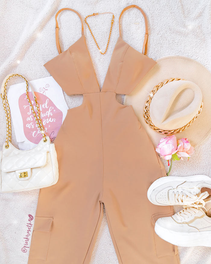 Enterizo camel top escote profundo en v tipo cargo