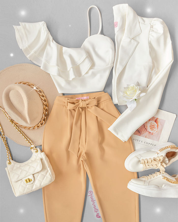 Pantalón bota recta con bolsillo, prenses y lazo