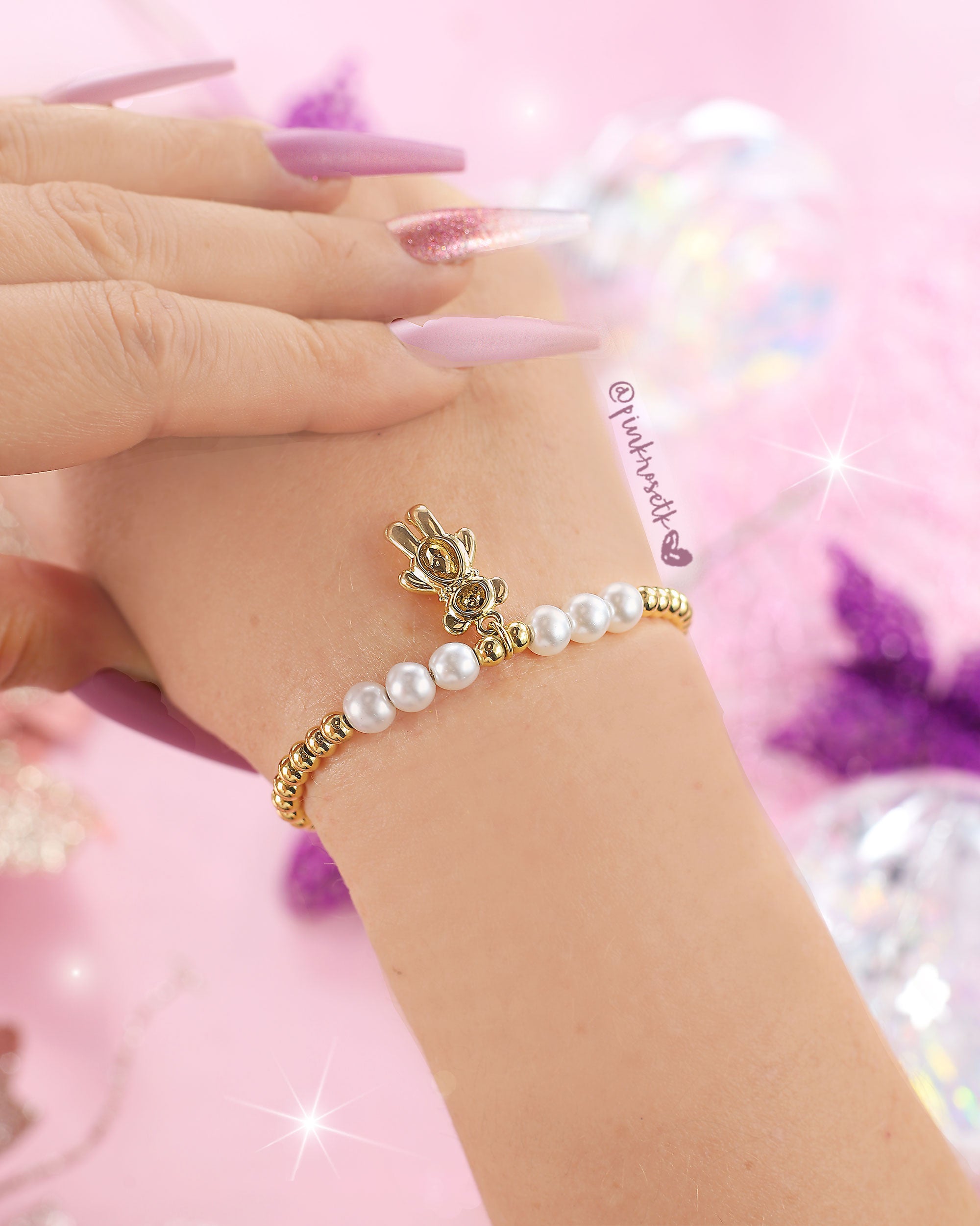 ¡Añade un toque de elegancia a tu muñeca con nuestra pulsera elegante dorada! Con delicadas perlas y un dije con forma de oso, esta pulsera no solo es un accesorio hermoso, sino también un símbolo de amor y protección. ¡Hazte con una hoy mismo y llena tu vida de estilo y significado!