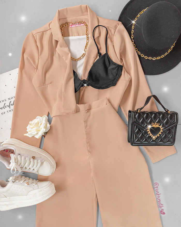 Set de dos piezas en satín pantalón bota ancha y chaqueta