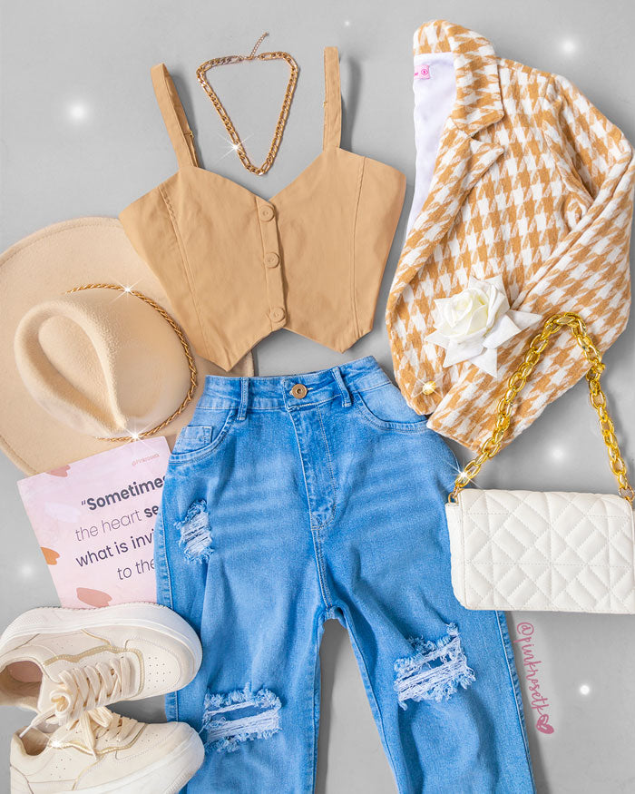¡Inspirado en la moda clásica, nuestro top camel de tiras cuenta con botones forrados que agregan un toque sofisticado a cualquier look! Confeccionado en un suave tejido de alta calidad, este top es cómodo y elegante. Perfecto para cualquier ocasión, ¡seguro se convertirá en tu pieza favorita en tu guardarropa!