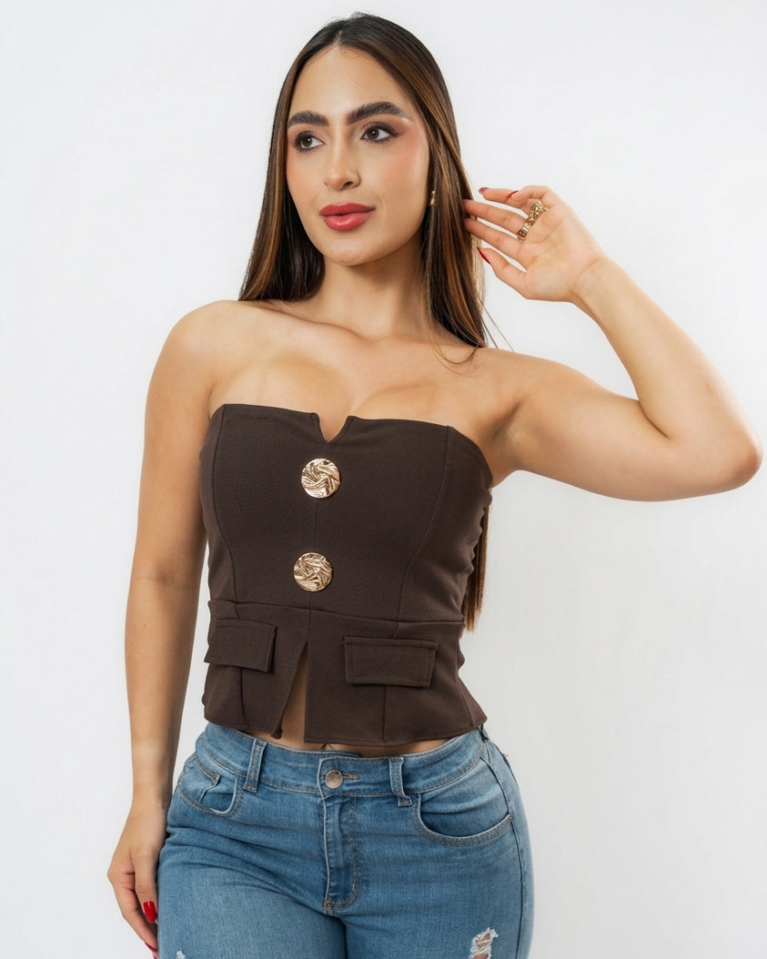 Blusa Strapless con Dos Botones Grandes