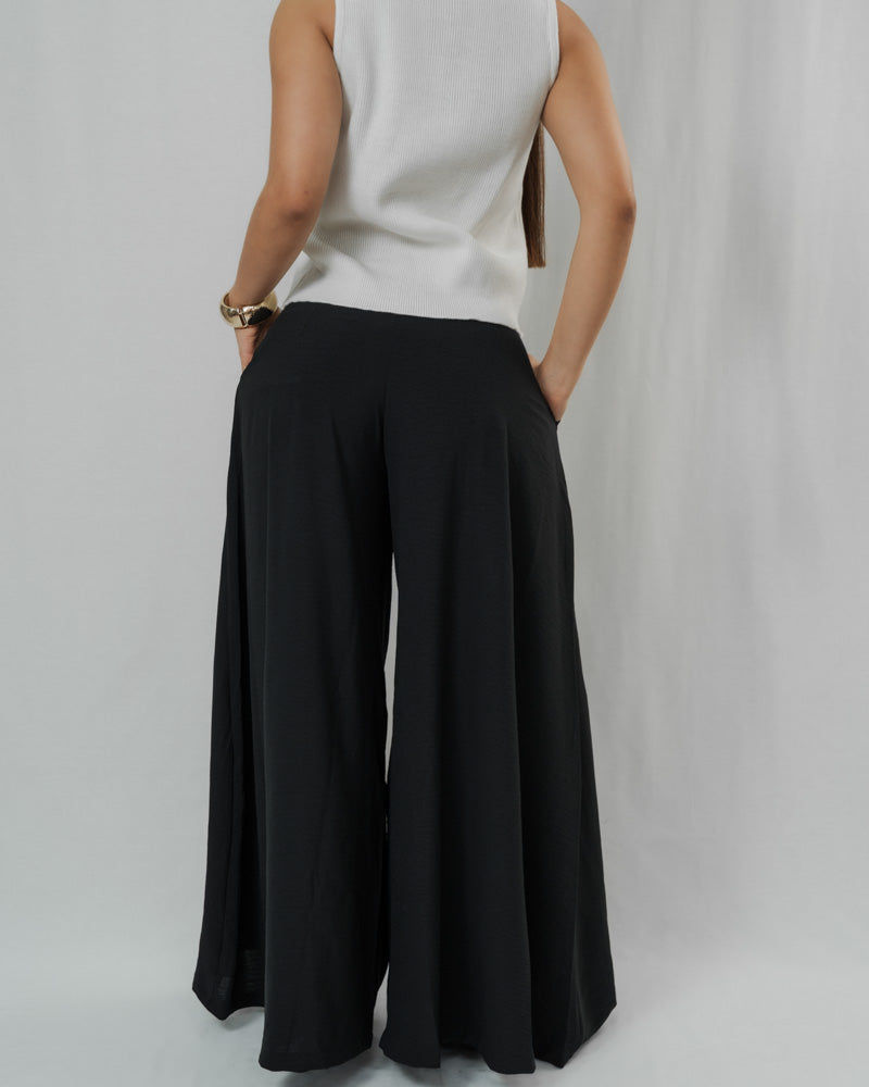 Luce un estilo elegante y cómodo con el Pantalón palazo sencillo, una prenda versátil que combina sofisticación y frescura en un solo diseño. Su corte amplio tipo palazo aporta movimiento y fluidez, ofreciendo un ajuste relajado que estiliza la figura y realza cualquier outfit.