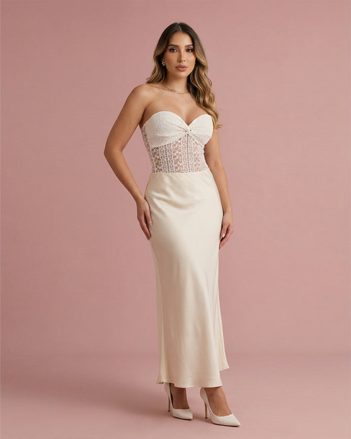 Vestido Strapple con Tablas y Escote Corazón - S / BLANCO