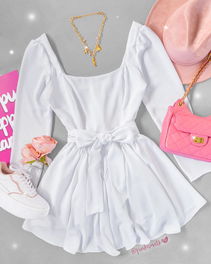¡Luce elegante y femenina con nuestro Vestido corto blanco manga larga y lazo! Este vestido te hará sentir cómoda y fresca gracias a su diseño de manga larga y suave tejido. Además, su lazo en la cintura te permitirá ajustar el vestido a tu figura perfectamente. ¡Ideal para cualquier ocasión especial!