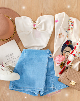 La blusa strapless con aplique en el centro es una prenda moderna y sofisticada que resalta la feminidad con un toque elegante. Su diseño sin tirantes realza los hombros y el escote, mientras que el detalle central aporta estilo y distinción. Ideal para combinar con faldas, pantalones de tiro alto o jeans, esta blusa se convierte en la opción perfecta para eventos especiales, salidas nocturnas o looks casual chic. Su estilo versátil la hace imprescindible en el guardarropa femenino.