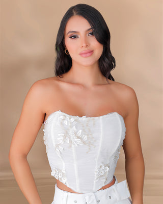 Destaca con elegancia y un toque romántico con nuestro Crop Top de Malla Strapless con Flores Bordadas. Este top sin tirantes está confeccionado en una delicada malla semitransparente que aporta sensualidad y frescura, ideal para los días cálidos o looks de noche. Su diseño floral bordado a mano añade un detalle sofisticado y femenino que eleva cualquier outfit.