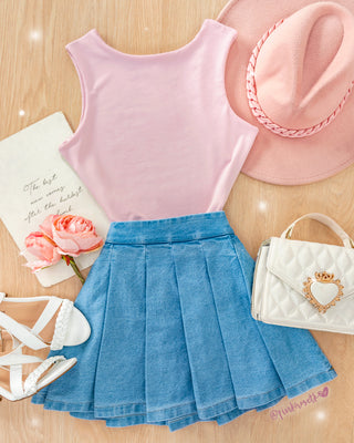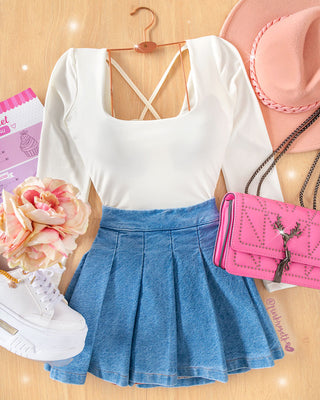 La Falda de Jean con Tablas es la prenda ideal para darle un toque juvenil y moderno a tu estilo. Su diseño en denim resistente y versátil se complementa con delicadas tablas que aportan movimiento y frescura, creando un look dinámico y favorecedor.