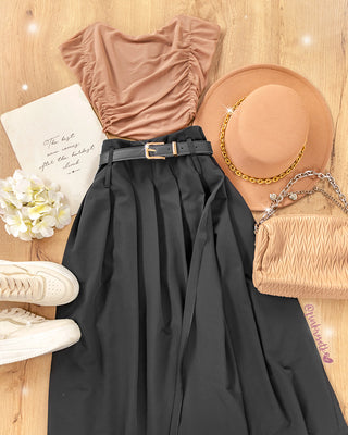 Dale un aire sofisticado y elegante a tu estilo con la Falda Larga Prenses con Correa y Hebilla, una prenda femenina y versátil que se adapta a múltiples ocasiones. Su diseño tipo prenses con pliegues aporta caída y movimiento, realzando la silueta con un toque refinado y moderno.