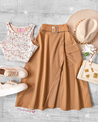 La Falda Maxi Cargo con Botones y Cinturón es la prenda ideal para un look urbano, moderno y con mucho carácter. Diseñada en un estilo cargo contemporáneo, cuenta con bolsillos funcionales, una silueta maxi que estiliza y aporta comodidad, además de un cinturón ajustable con hebilla que realza la cintura y permite un ajuste perfecto.