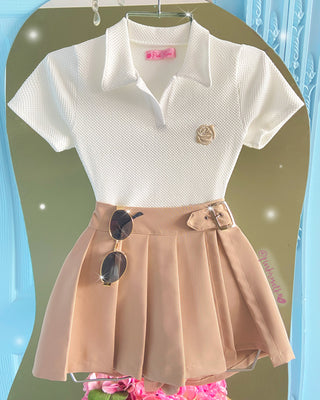 La falda short camel con hebilla lateral es una prenda versátil y moderna que combina la elegancia de una falda con la comodidad de un short. Su diseño en tono camel aporta un aire sofisticado y atemporal, mientras que la hebilla lateral añade un detalle chic que realza la cintura. Ideal para crear looks casuales, de oficina o salidas con estilo, esta falda short es una pieza imprescindible en el armario femenino, ya que permite libertad de movimiento sin perder la feminidad y el buen gusto.