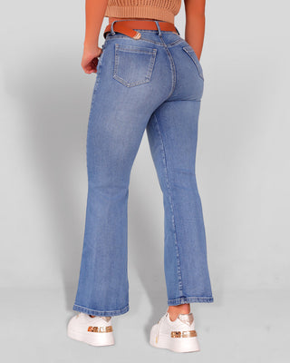 Revive el encanto del estilo vintage con nuestro Jean Flare sencillo en tono claro con bota campana, una prenda imprescindible para quienes aman la moda con personalidad y un aire atemporal.