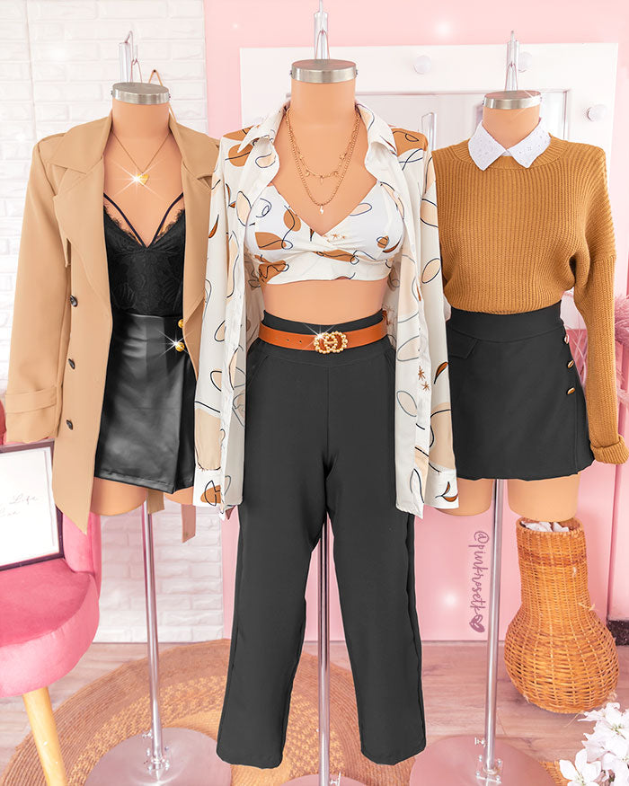 Esta camisa es una mezcla perfecta de lo elegante y lo vanguardista. Con un top estampado de caras en tono café que se asoma sutilmente por encima, esta prenda combina estilo y personalidad para crear un look único e inolvidable.