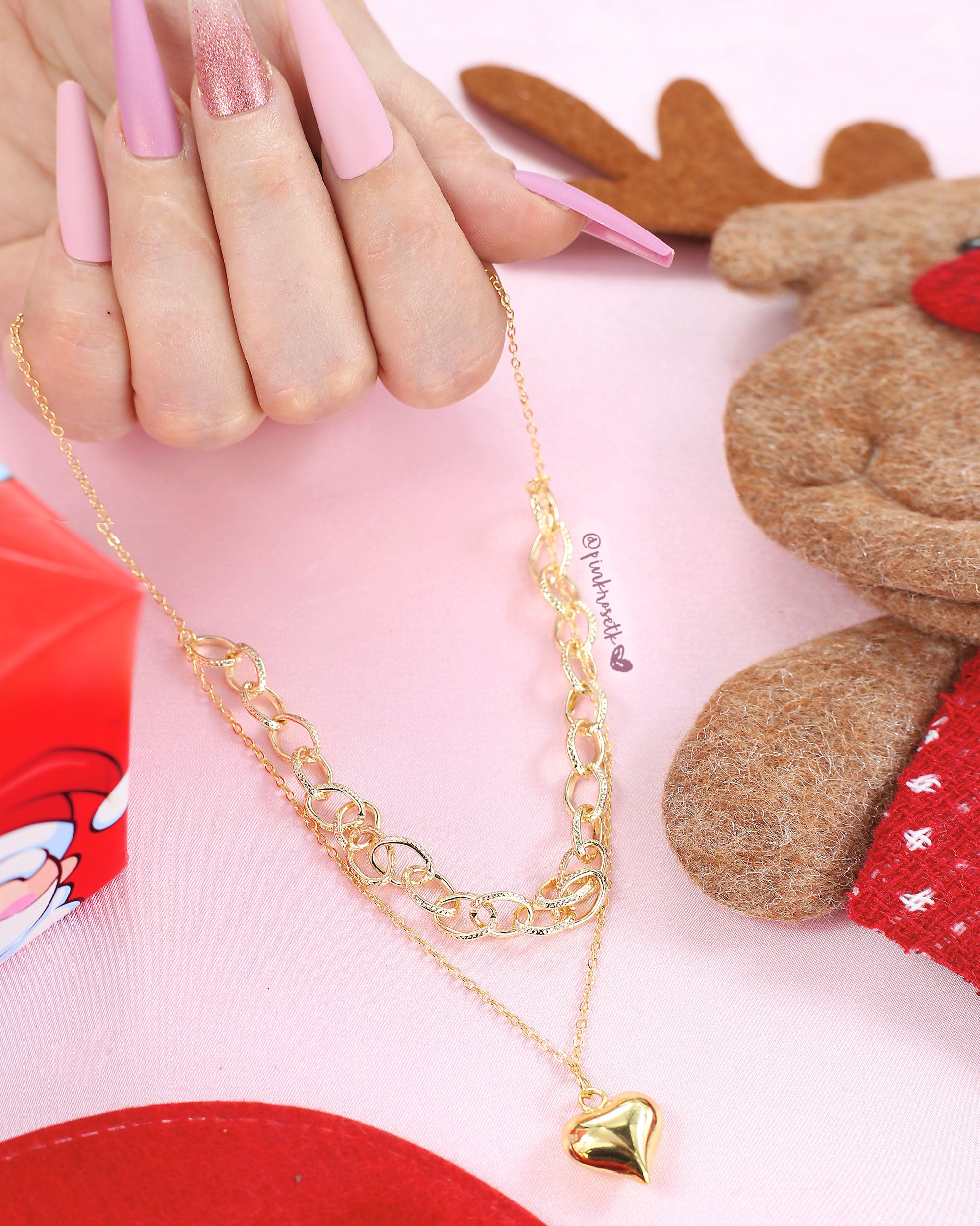 ¡Añade un toque de glamour a tu outfit con nuestro collar dorado de doble cadena y eslabones, destacado por un hermoso corazón dorado! Completa tu look con estilo y déjate inspirar por su elegante diseño. ¡Haz una declaración de moda con nuestro collar único!