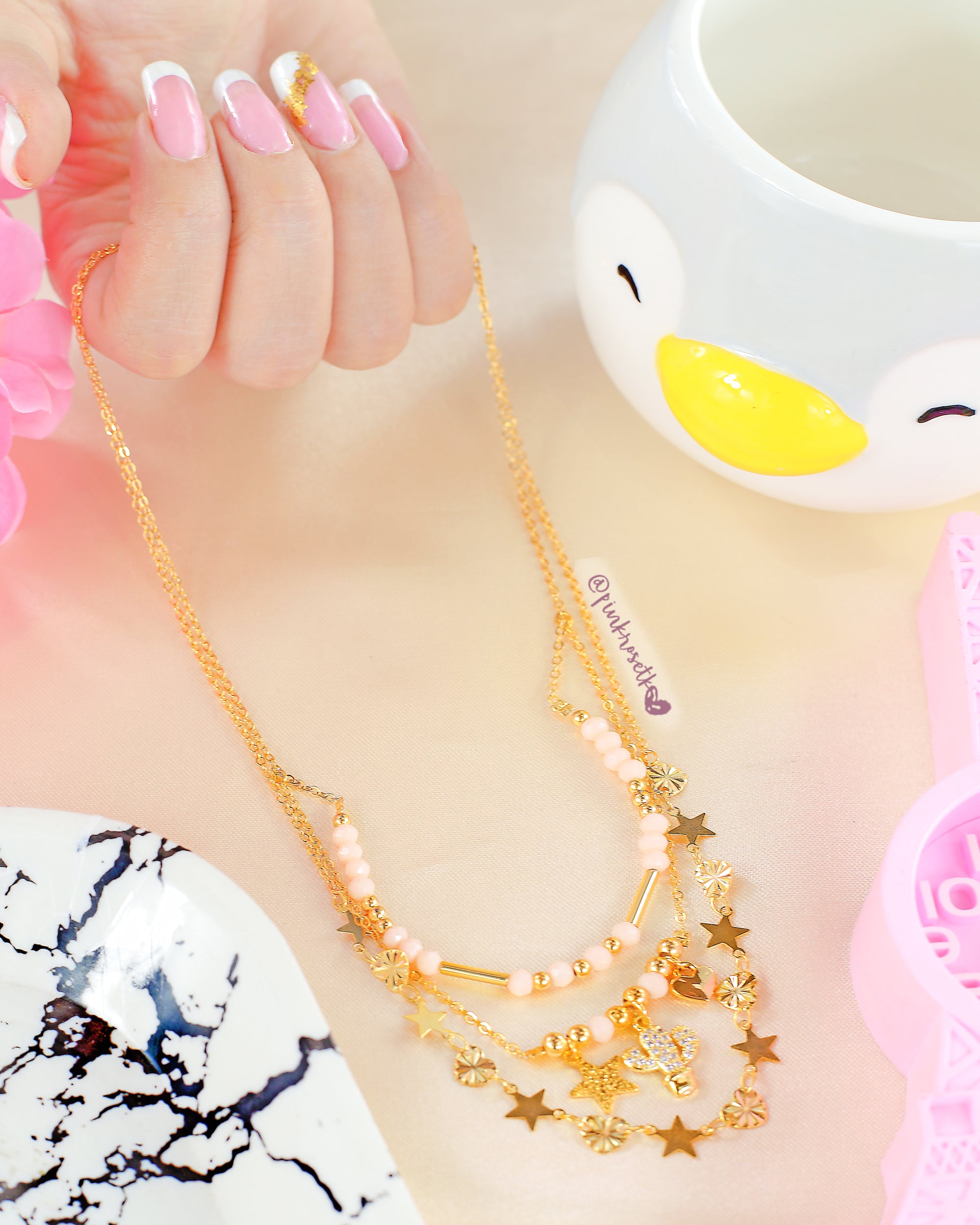 Collar dorado estrellas pequeñas perlas y dijes cactus corazón