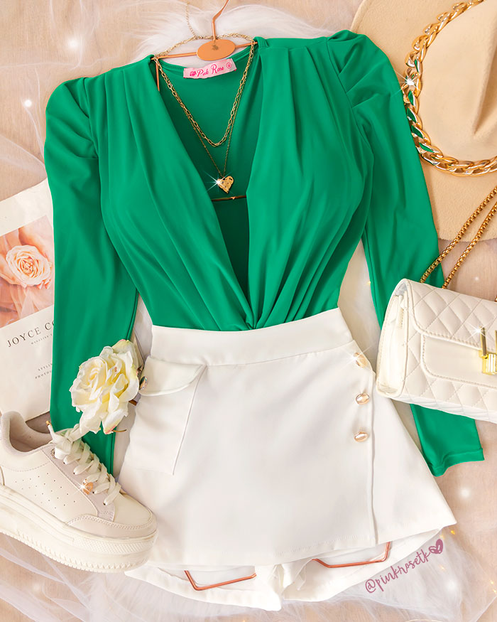Bodysuit cruzado con manga puff verde esmeralda.
