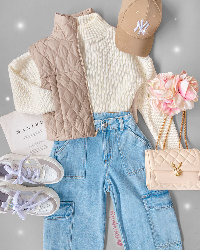 El chaleco acolchado beige de cuello alto y bolsillos provee un look moderno y elegante. Con su acolchado ligero y su cuello alto, ofrece una comodidad óptima en exteriores. Los dos bolsillos frontales garantizan un almacenamiento seguro para tus bienes más importantes.