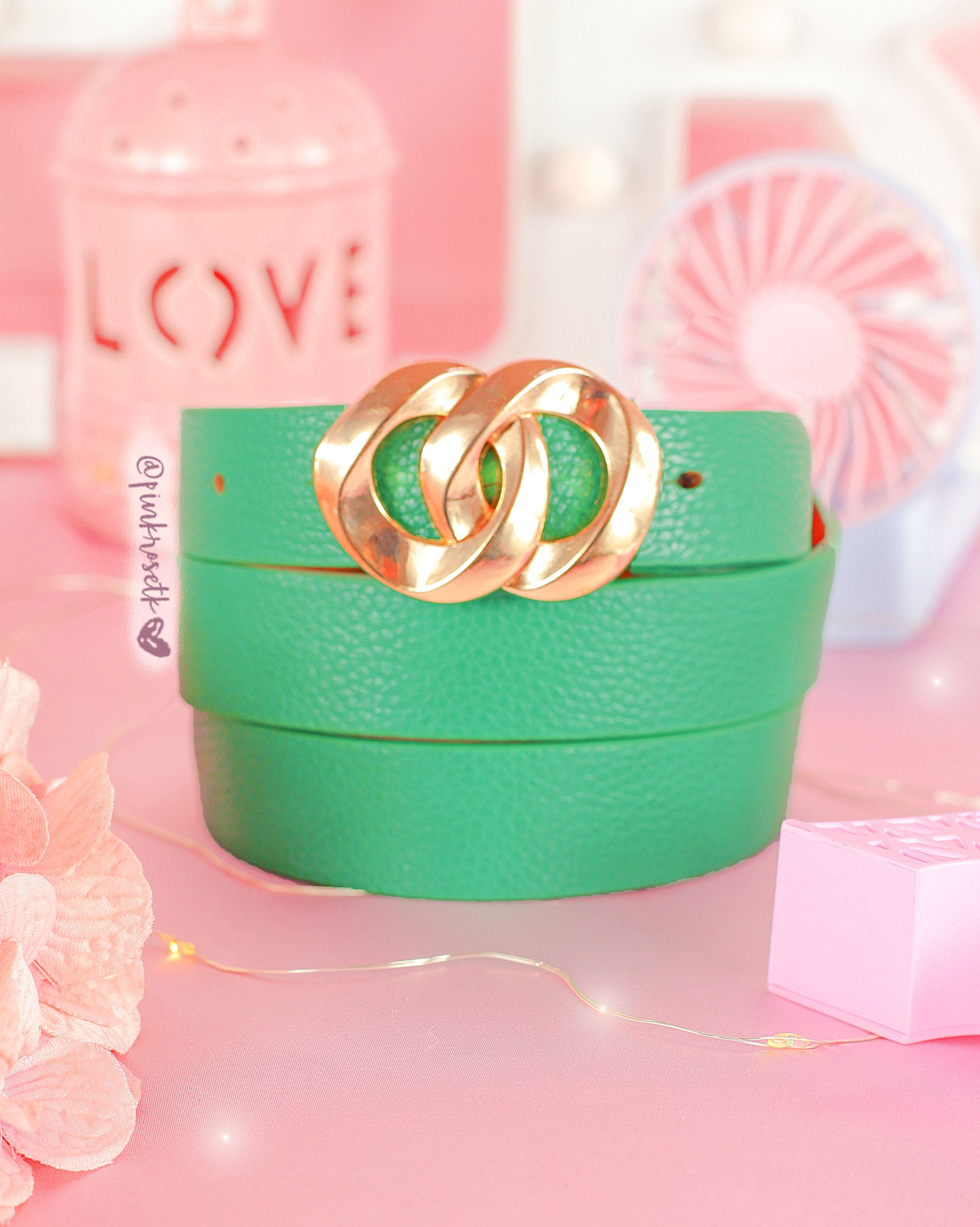 Correa verde Gucci delgada hebilla 2 aros enlazados