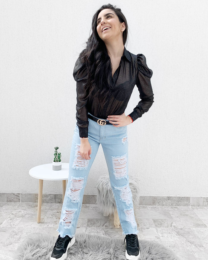 Jean boyfriend con desgastes en las piernas y en los bolsillos posteriores