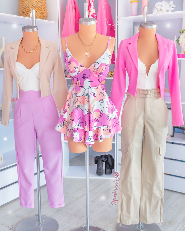 Combina modernidad y estilo con este romper único! Está hecho con un tejido blanco suave y viene con un estampado de caras rosado para darle un toque divertido. El top tiene un hermoso escote en forma de V que lo hace aún más lindo. ¡Luce tu mejor versión con este fabuloso romper!