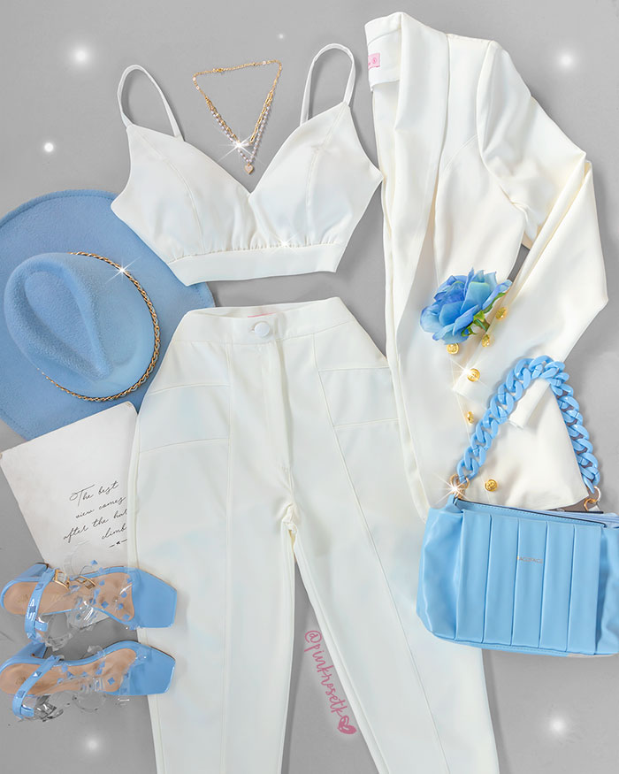 Elegante y sofisticado, este set blanco de pantalón, top y blazer con botones dorados es la opción perfecta para lucir con estilo en cualquier ocasión. La combinación de piezas clásicas con detalles dorados añade un toque de glamour a tu guardarropa.