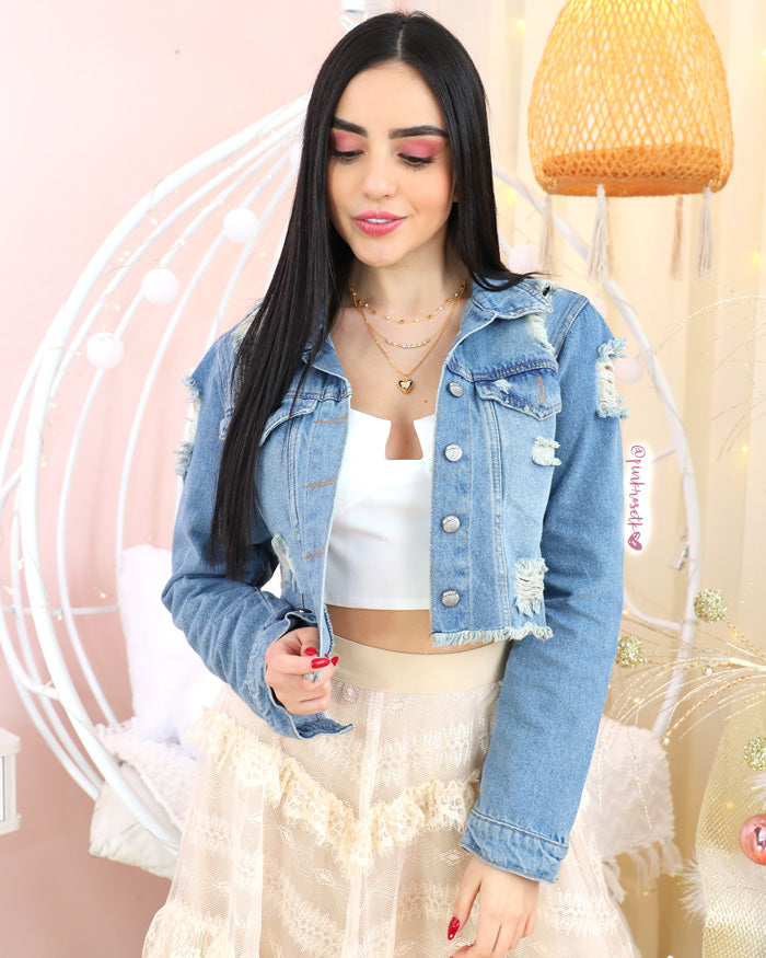 Chaqueta de Jean con desgastes CHA10729BLU