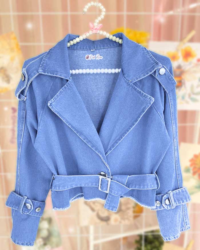 La correa en la parte inferior permite ajustar el fit a la cintura, logrando un look más estilizado y versátil. Confeccionada en jean de alta calidad, esta chaqueta es resistente, cómoda y perfecta para acompañar tus outfits casuales o chic en cualquier temporada.