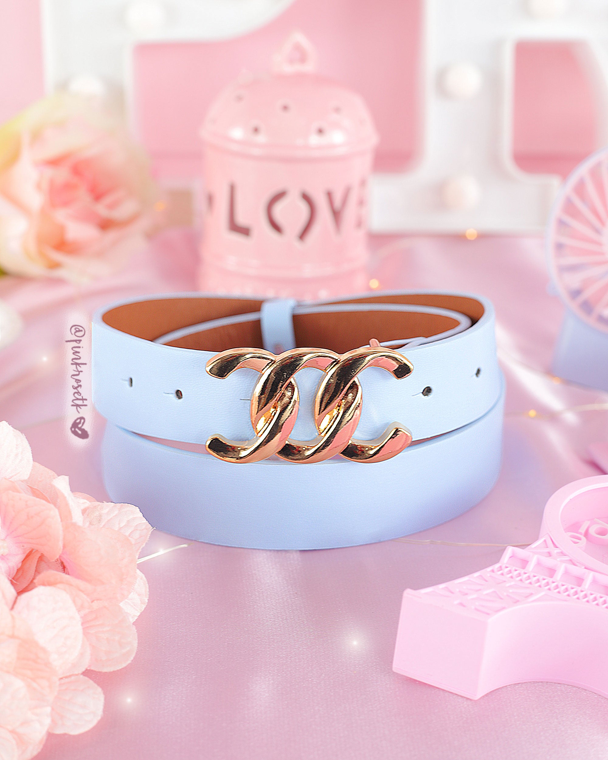 Correa azul clara hebilla dorada