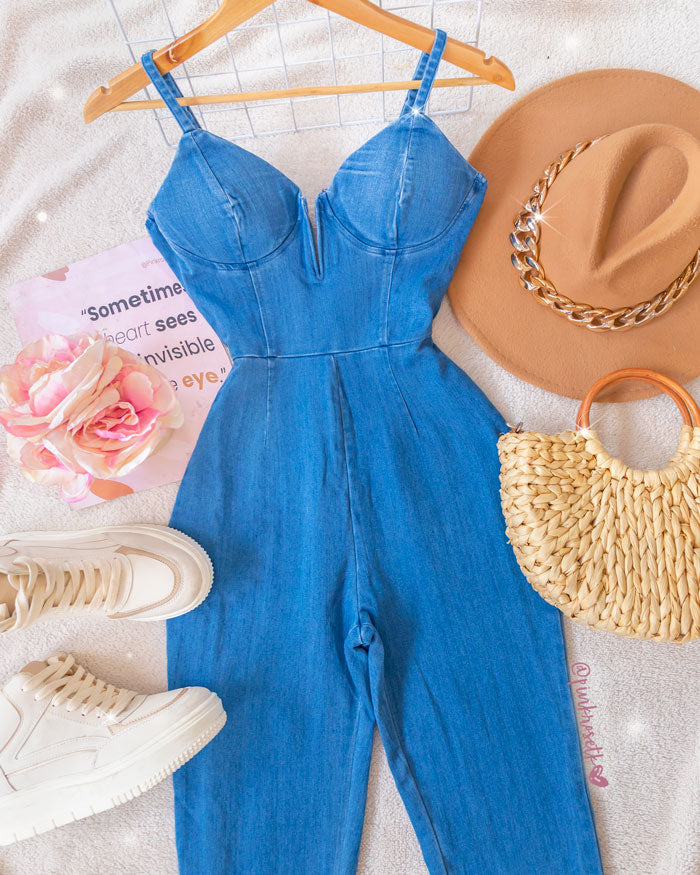 ¡Lleva tu estilo al siguiente nivel con nuestro Enterizo denim ajustado de tiras y copas! Con su diseño ajustado, realzará tus curvas y le dará un toque sensual a tu look. Las tiras añaden un toque de elegancia y las copas te brindarán comodidad y soporte. ¡Siente tu confianza aumentar con este enterizo!