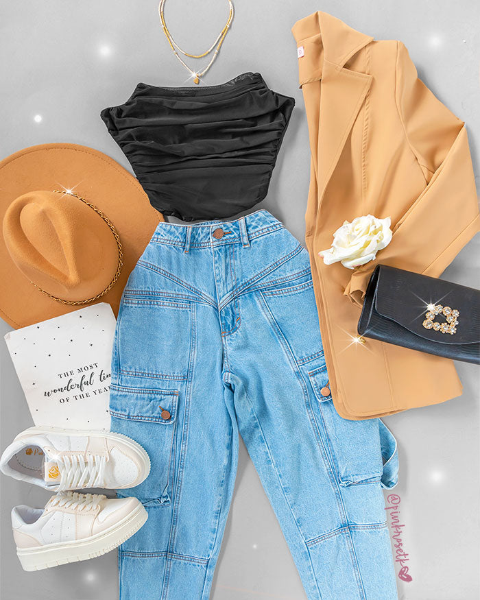 Un clásico renovado, el pantalón blue jean cargo se adapta a la tendencia actual con su corte ajustado y detalles de bolsillos utilitarios. Perfecto para un look casual y desenfadado.