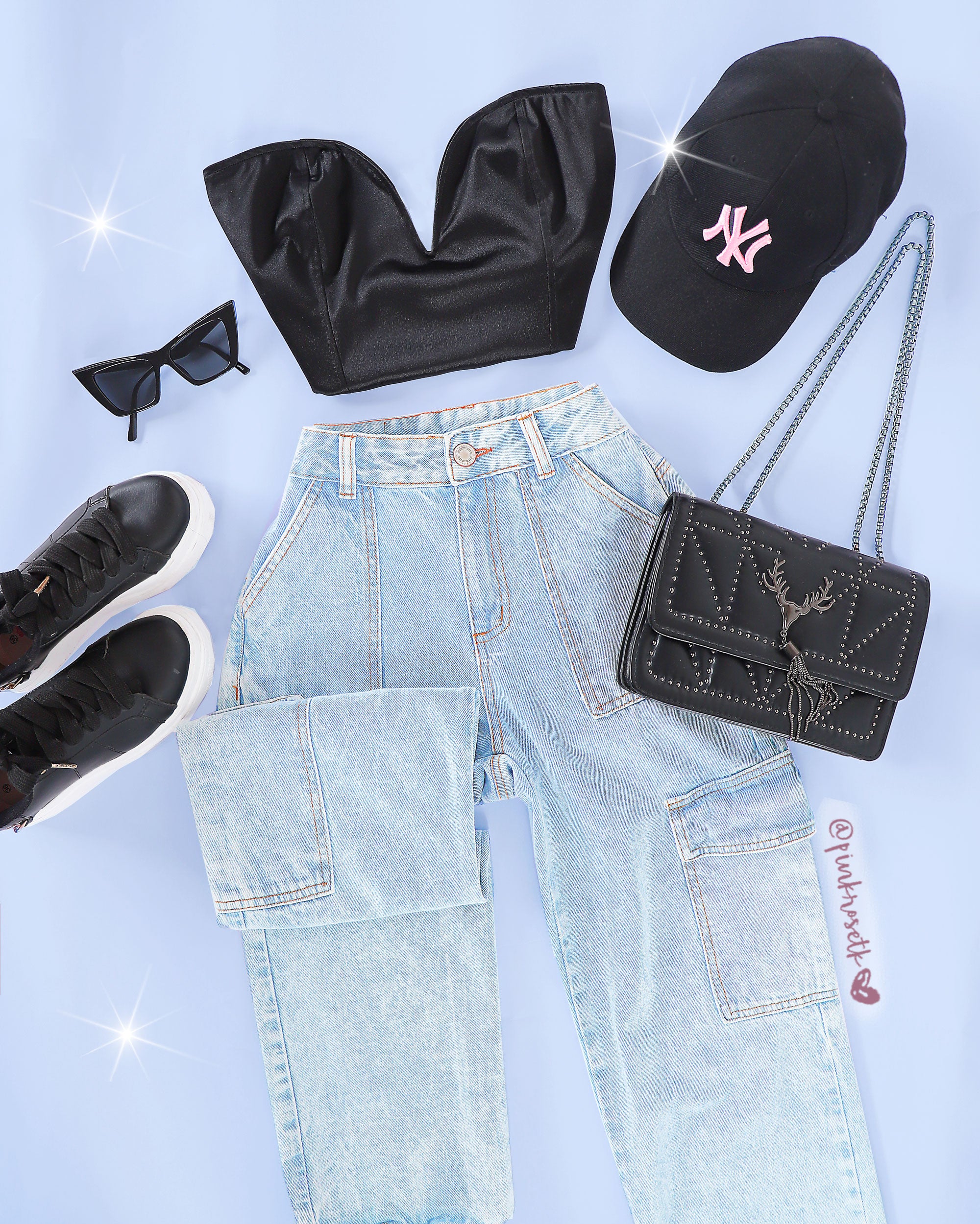 El Pantalón blue jean cargo tiro alto presenta una moderna combinación de estilo y comodidad. Hecho con algodón de la mejor calidad, se adapta perfectamente al cuerpo. Su tiro alto, añadirá un toque más formal a tus outfits. Perfecto para creación de looks atrevidos.