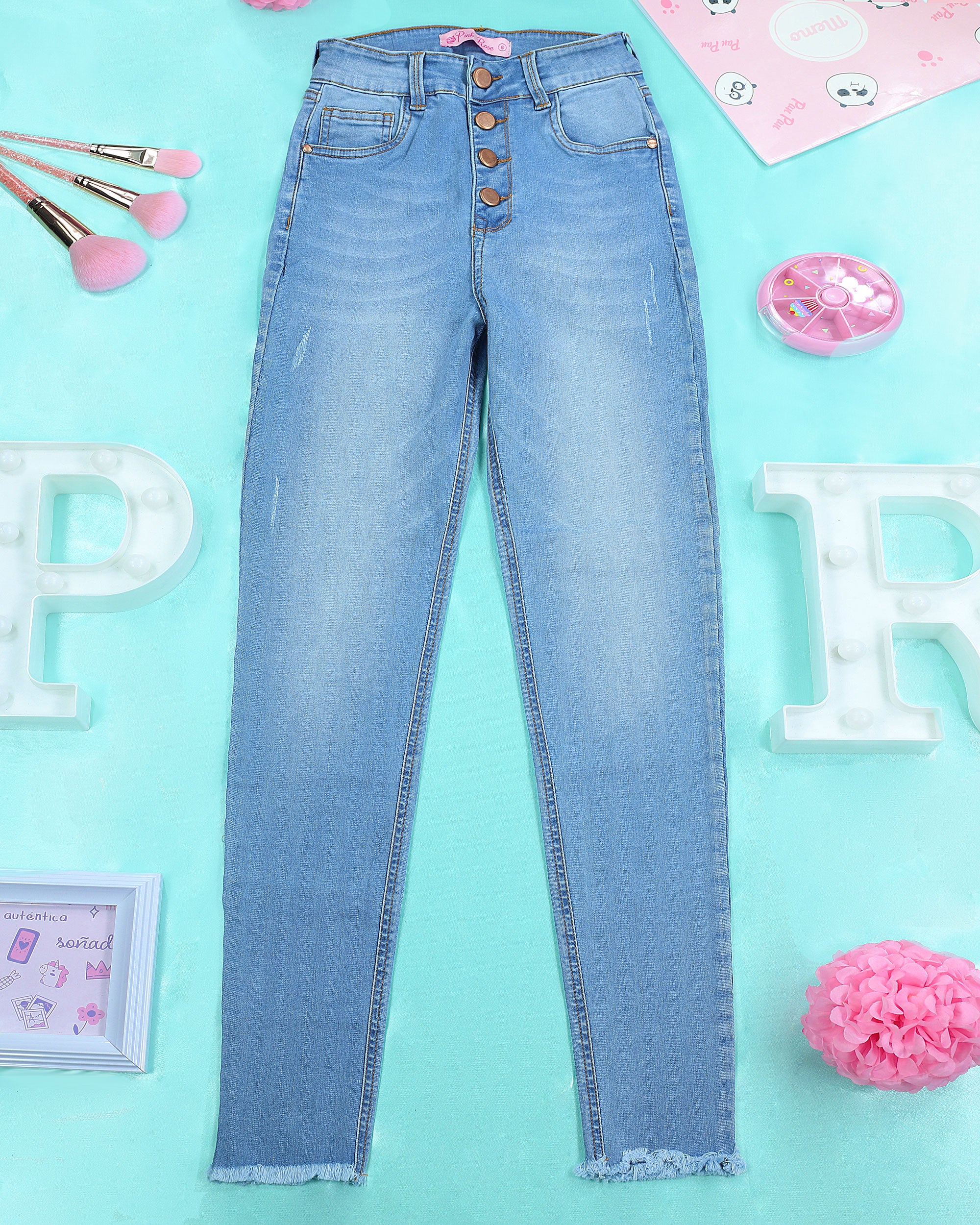 ¡Luce increíble con nuestro pantalón blue jean skinny con 5 botones! Los botones adicionales añaden un toque de elegancia, y el diseño skinny se ajusta perfectamente al cuerpo para mostrar tu mejor silhouette. ¡Asegúrate de tenerlo en tu guardarropas hoy!