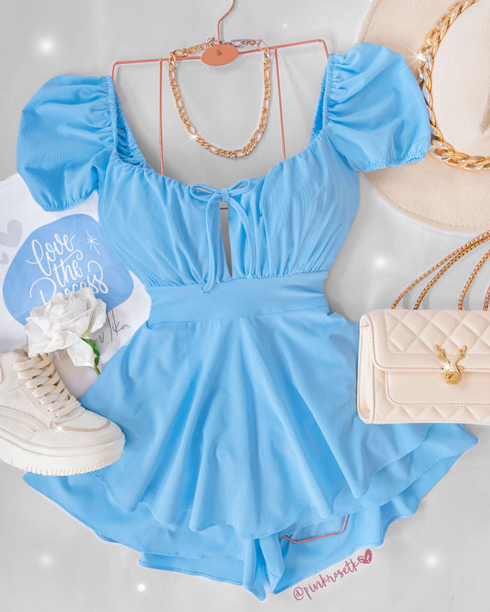 ¡Toda la comodidad y estilo en una prenda! El Romper azul bebe manga corta cuello bandeja te hace destacar con su diseño de manga corta y cuello bandeja. Confeccionado en suave tejido maya, es perfecto para cualquier ocasión. ¡Siente el lujo en tu piel con este romper!