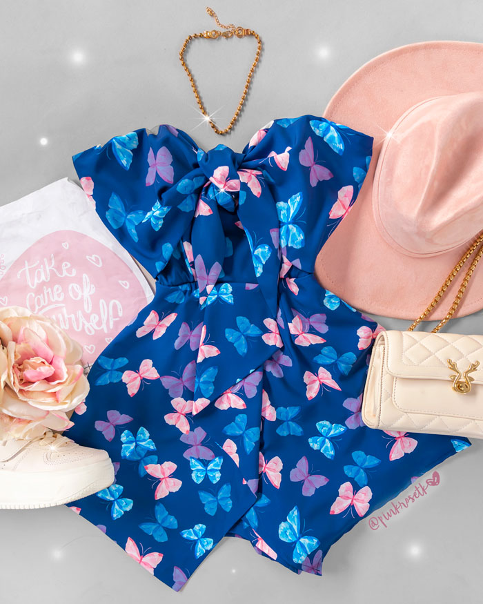 ¡Viste con estilo y elegancia con nuestro Romper azul navy strapless con nudo y mariposas! Diseñado con un moderno nudo y delicadas mariposas, este romper es perfecto para cualquier ocasión. ¡Disfruta de la comodidad y la belleza en un solo atuendo!