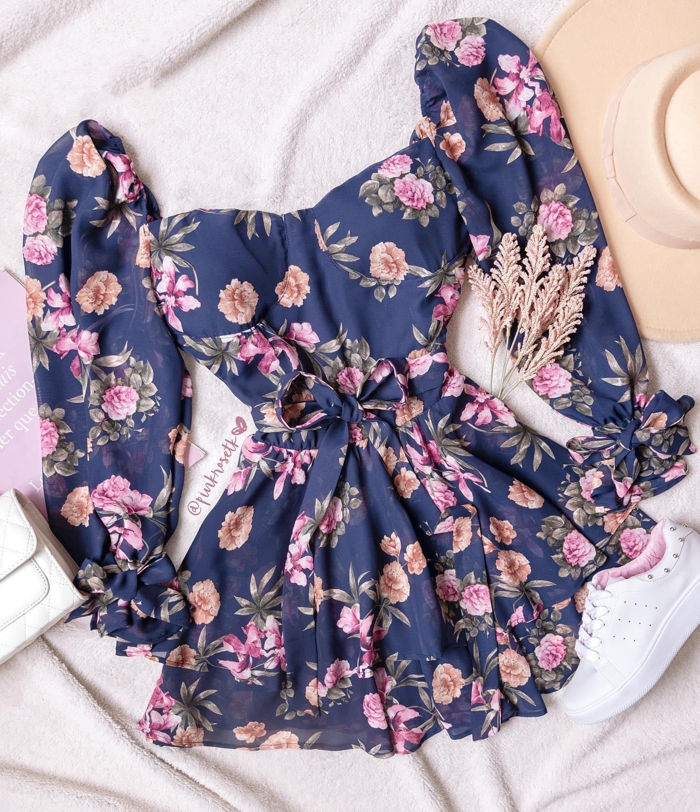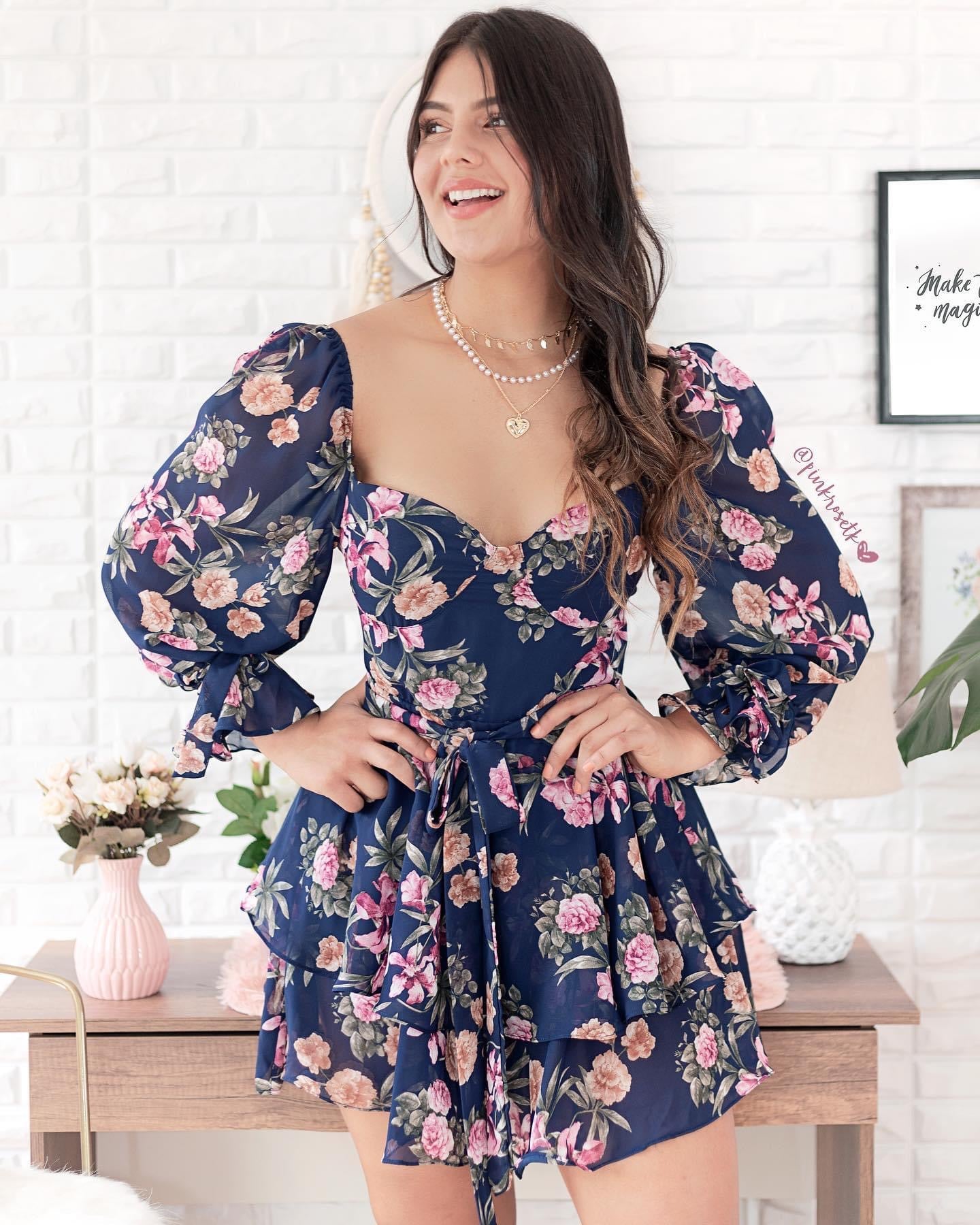 Romper de flores azul en chifón cautivador y encantador, que llega para que luzcas de una manera fresca y hermosa e ideal para salir con las amigas o disfrutar una cena especial.