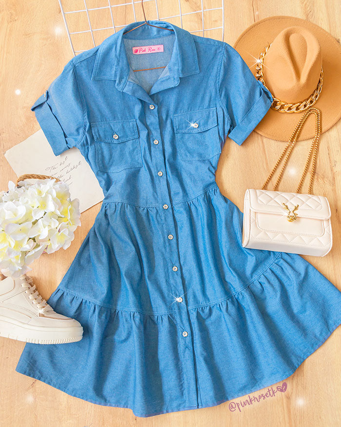 Este Vestido corto de denim azul falda en tiempos es perfecto para la temporada cálida. Está hecho de certa de calidad con detalles motivantes que seguramente lucirás espectacular. La tela es cómoda y transpirable, por lo que es ideal para el día a día. ¡Luce moderno y estilizado con el Vestido corto de denim azul falda en tiempos!