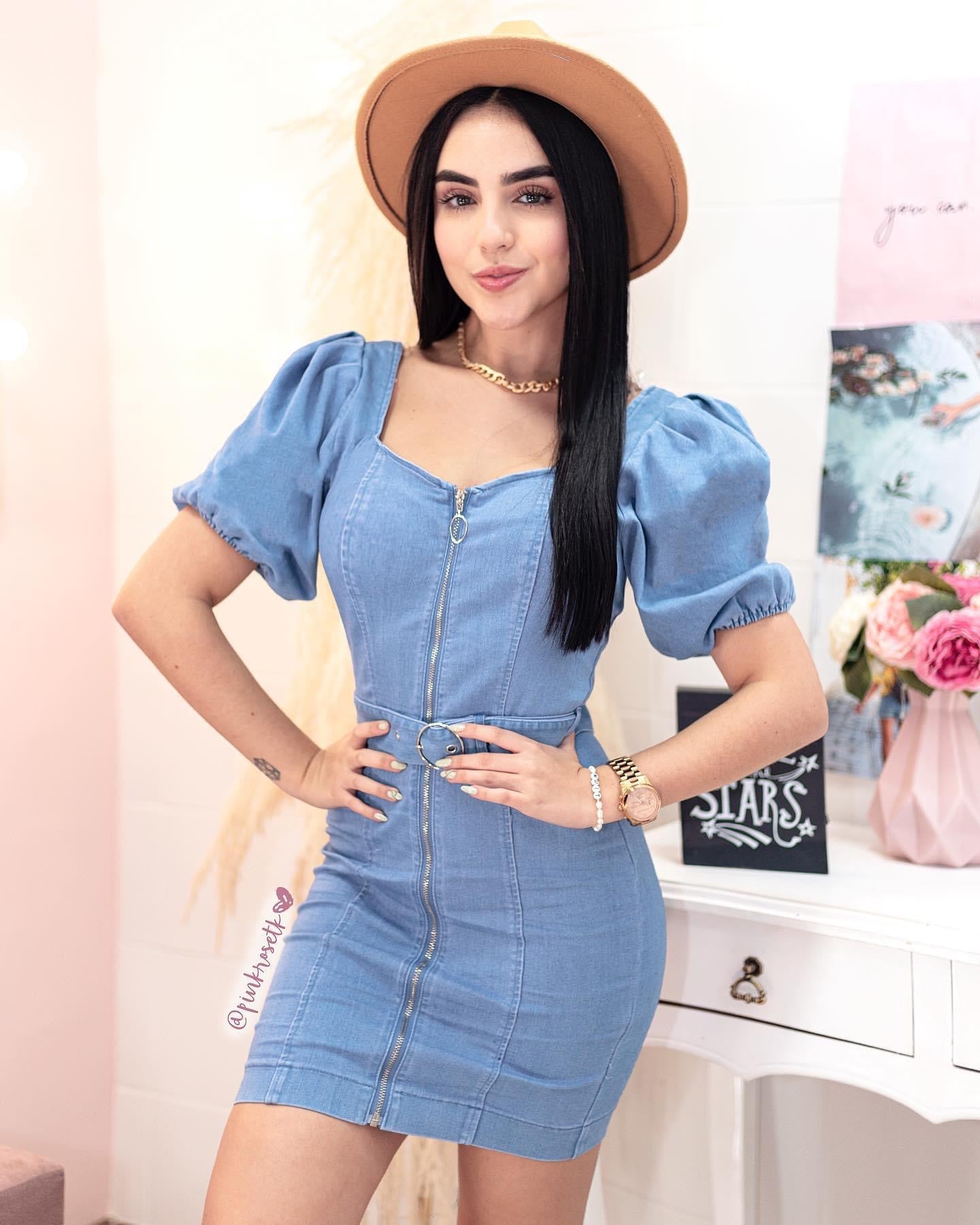 Vestido de jean manga puff con cinturón