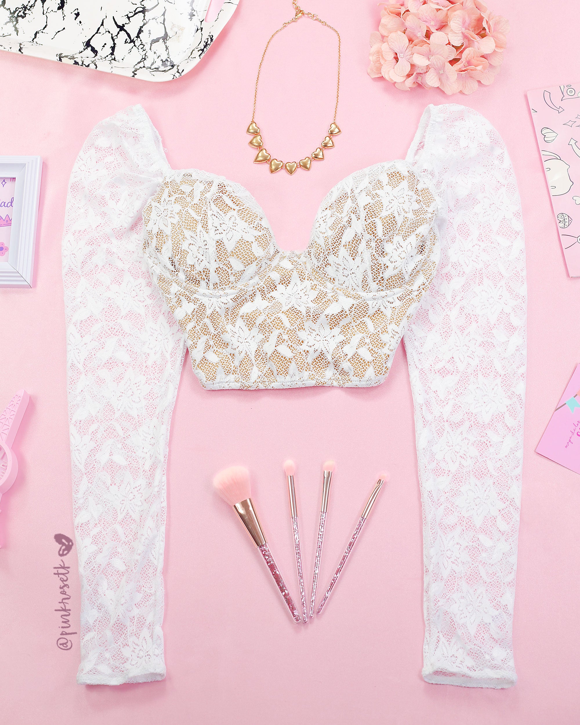 Blusa blanca de encaje manga larga