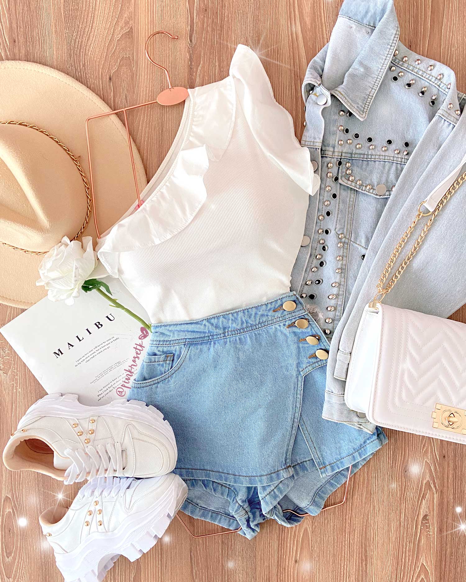 Blusita de una manga con boleros, blanca. Hermoso estilo para hacer un día ordinario uno extraordinario ;)