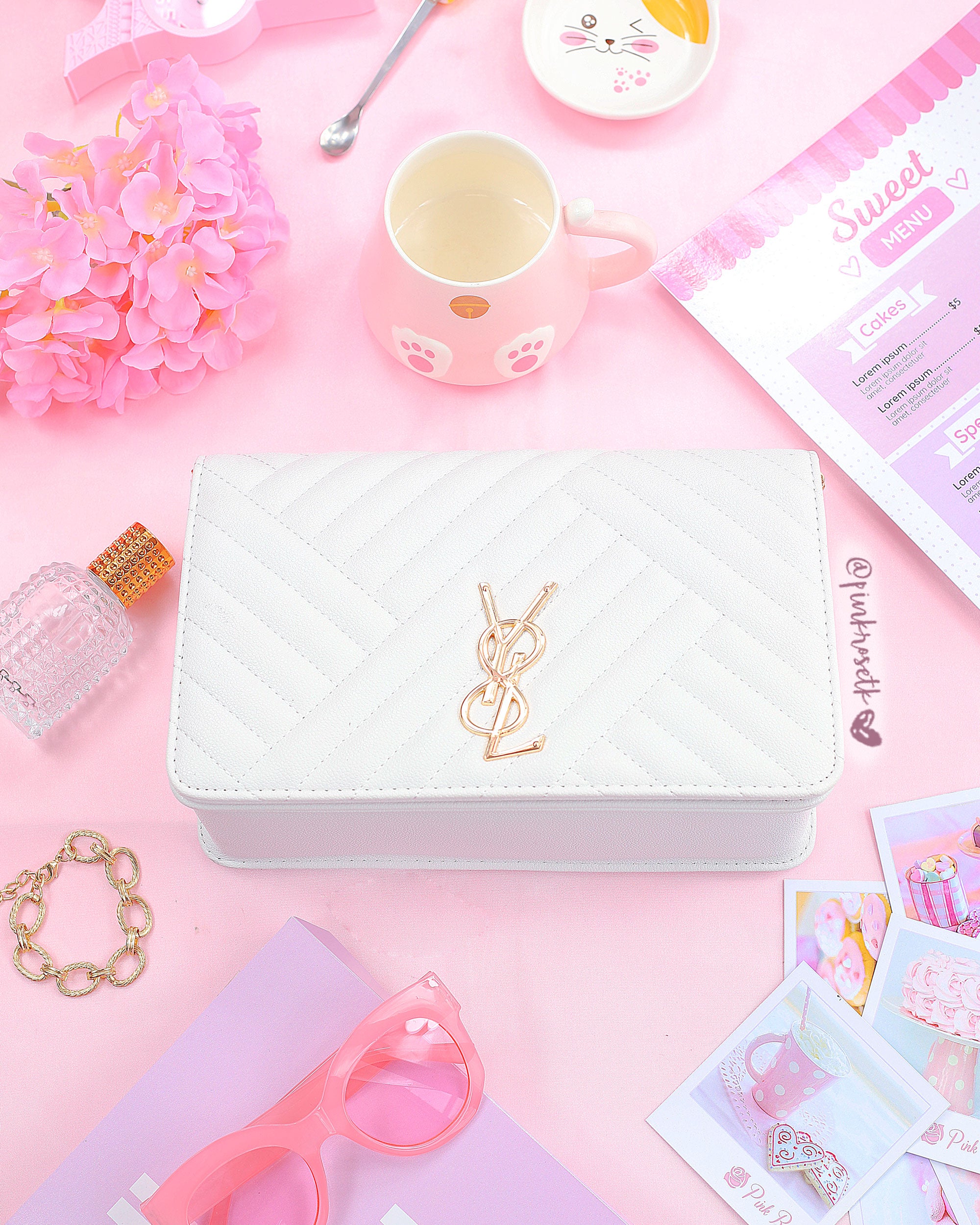 Aproveche el estilo y la comodidad. Nuestro bolso blanco con cadena y herraje dorado YS es la opción perfecta para cualquier ocasión. Está hecho de materiales de alta calidad con herrajes dorados para un look elegante y duradero. Disfruta de los beneficios de su diseño único con cadena larga para un uso cómodo y versátil.