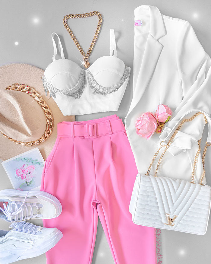 Bustier blanco de strash colgante