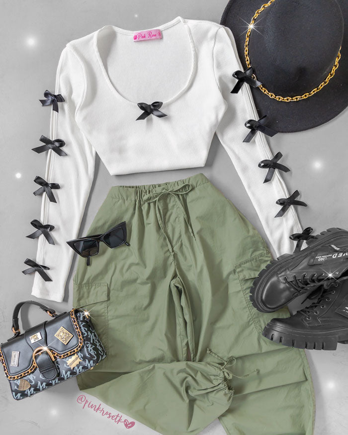 ¡Viste con estilo y frescura con nuestro buzo blanco en rib con moñitos negros! Perfecto para cualquier ocasión, su diseño único y detalles en moñitos negros te harán destacar y sentirte cómodo/a a la vez. ¡No te pierdas esta pieza única en tu guardarropa!