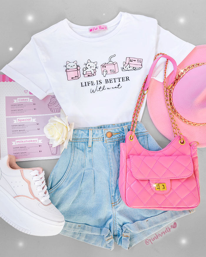Disfrutarás de sentir la suave y resistente tela de la Camiseta blanca life is better with a cat. Esta prenda refleja la idea de que "la vida es mejor con un gato", que es algo donde la mayoría podemos estar de acuerdo. Esta camiseta es una excelente forma de mostrar a tus amigos tu amor por los gatos.